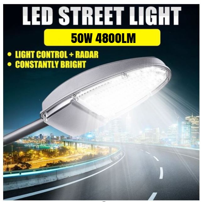 โคมไฟถนน LED Street Light 50W แสง Daylight Warmwhite เปิด-ปิดเองอัตโนมัติ พร้อมขายึด ขนาดวัตต์ 50 วัตต์ |