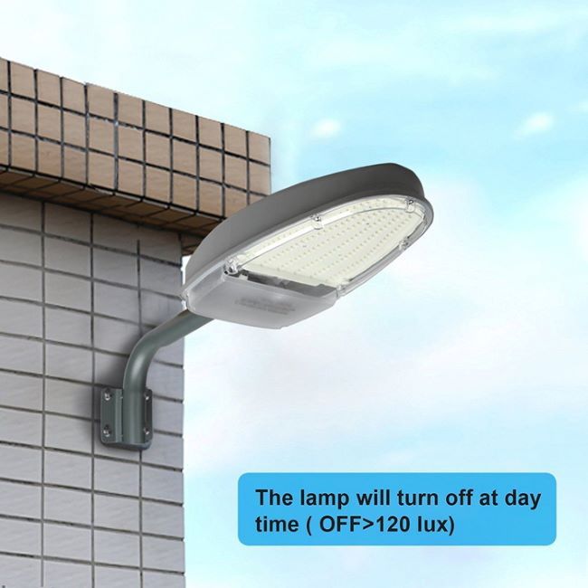 โคมไฟถนน LED รูปทรงใหม่ ขนาด 50W แสง Daylight Warm white เปิด-ปิดเองอัตโนมัติ พร้อมขายึด ราคาสุดประหยัด มีระบบควบคุมการเปิด-ปิด ด้วย สวิตช์แสงแดดสามารถเปิด-ปิด เอง ไฟจะสว่างขึ้นเอง เมื่อถึงเวลากลางคืน และจะดับในเวลากลางวัน